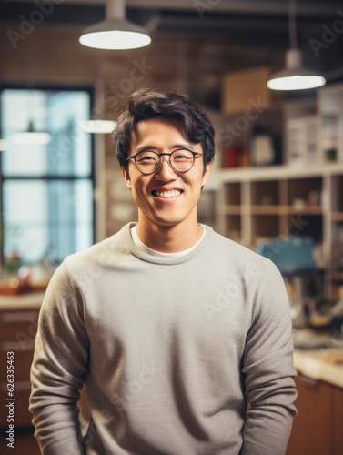 Confident handsome and successful asian man smiling and looking determined. Generative AI