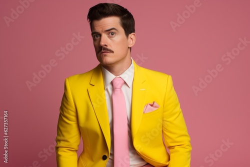 man, suit, fashion, pink, yellow, confident, photogenic, caucasian, professional, model, trendy, successful, background, success, portrait, adult, manager, looking, executive, job, entrepreneur, copy space, fashionable, clothing, colourful, e-business, elegant, discount, club, advertisement, glamour, masculine, shopping, trend, wear, moustache