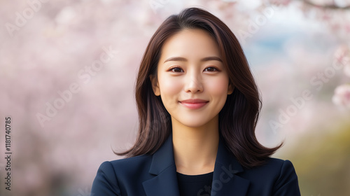 businesswoman, korean, portrait, leadership, manager, smiling, person, business, female, happy, cheerful, confident, lady, positive, professional, success, ambition, asian, japanese, chinese, happiness, woman, cherry blossom, nature, spring, beauty, floral, landscape, elegance, style, career, young, vibrant, soft, background, serene, friendly, stylish, black suit, personal, growth, empowerment, motivation