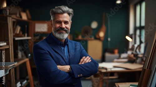 man, portrait, studio, office, confident, smiling, business, professional, success, happy, executive, entrepreneur, leader, manager, workplace, adult, male, beard, grey, hair, photographer, model, people, person, image, background, design, creativity, art, work, career, team, company, corporate, marketing, advertising, modern, stylish, elegant, fashion, lifestyle, achievement, goal, ambition