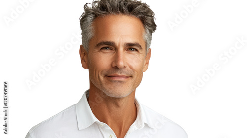 man, hair, shirt, confident, silver, smile, wear, white, background, portrait, face, beauty, human, closeup, person, shine, fashion, adult, mature, career, happy, neutral, trendy, facial, charme, stylish, look, attracted, refine, cheerful