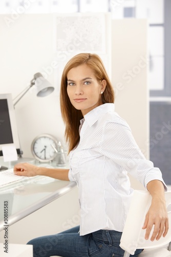 Confident office girl at desk