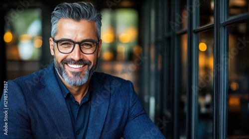 Confident Smile of Success: A distinguished gentleman, with a warm, genuine smile and dressed in a smart suit, exudes an air of confidence, business acumen, and experience.