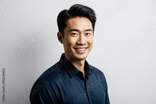 confident, smiling, photogenic, happy, model, portrait, face, hair, skin, japanese, korean, isolated, casual attire, cute, attractive, cheerful, nice, delighted, expression, friendly, half body, white background, good-looking, fresh, smart, successful, people, body, pose, arm, chin, studio, t-shirt, hand, looking, guy