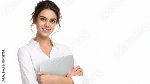 confident, woman, laptop, white, background, smiling, casual attire, portrait, arm, crossed, business, technology, young, professional, friendly, attractive, model, office, independent, lifestyle, success, isolation, female, casual clothes, light, bright, happy, pose, personal, charme, elegance, modern, digital, computer, working, communication, idea, entrepreneur, innovation, creative, productive, cheerful, approach, youth, beauty, self-assured, elegant, motivation