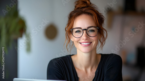 Confident Woman Smiling After Completing Her Taxes Online – IRS Season Concept with Laptop and Checklist