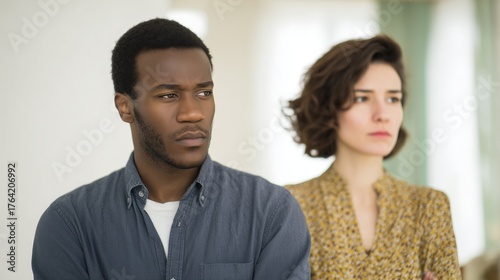 conflict, interracial, couple, wife, suspect, husband, cheating, adultery, african american, black man, caucasian, human relationships, trust, partner, sad, lost, black, frustration, married, cheat, cheater, spouse, infidelity, 2, dark skin