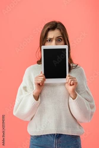 beautiful, surprise, holding, person, girl, female, people, caucasian, brunette, connection, style, fashion, stylish, woman, communication, surprised, using, trendy, attractive, shocked, fashionable, confused, copy space, studio shot, young adult, blank screen
