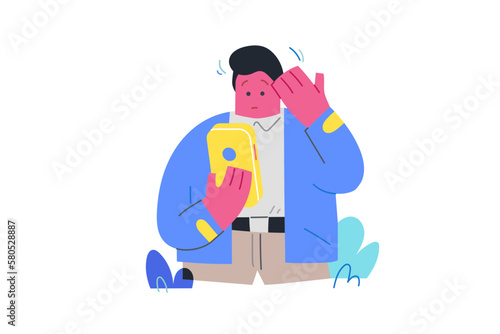 illustration, vector, smartphone, person, mobile phone, mobile, young, expression, confused, communication, technology, cellular, holding, using, cyberspace, chatting, face, male, contraption, message, omg, amazed, shock, hand, text message, standing, online, scared, hispanic, mouth, emotion, reading, typing, afraid, nervous, dissatisfied, confusion, fear, surprise, worried, negative, thoughtful, reaction, news, unhappy, thinking, showing, boy, speechless