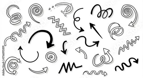 Conjunto de flechas dibujadas a mano aisladas sobre fondo blanco