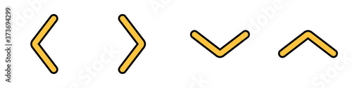 Conjunto de iconos de flechas amarillas vectoriales. arriba, abajo, izquierda, derecha