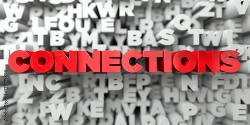 CONNECTIONS - Red text on typography background - 3D rendered royalty free stock image. This image can be used for an online website banner ad or a print postcard.