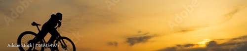 Conquering mountain peaks by cyclist in shorts and jersey on a modern carbon hardtail bike with an air suspension fork . Beautiful view from the mountain. Panoramic view for banner.