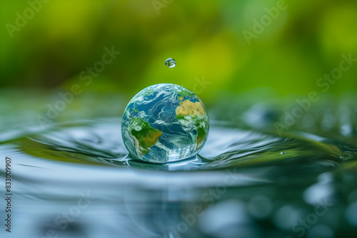 Conservation Concept Planet in a Water Droplet.