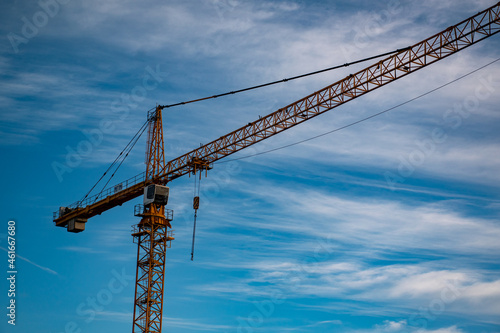 crane, construction, building, sky, industry, architecture, tower, site, engineering, equipment, steel, build, development, industrial, blue, high, lifting, work, metal, business, activity, structure, tall, lift, urban