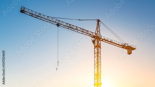 crane, construction, sunset, silhouette, sky, building, industry, machine, metal, tower, work, project, development, engineering, technology, equipment, lifting, height, structure, industrial, urban, site, progress, horizon, orange, yellow, blue, daylight, elevate, hoist, boom, beam, cable, wire, contraption, mechanism, contracting, architecture, design, heavy, machinery
