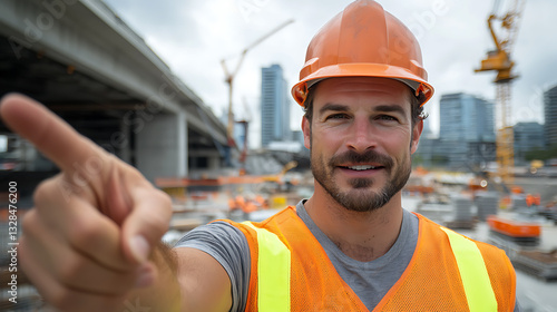 Construction safety briefing engineer instructing workers at urban site professional development content outdoor environment eye-level viewpoint industry best practices