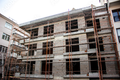 building, construction, architecture, scaffolding, house, city, business, urban, skyscraper, home, build, structure, sky, exterior, office, new, scaffold, facades, tower, apartment, industry, design, concrete, glasses, window