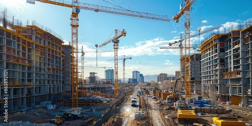 Construction Site with Cranes and Buildings