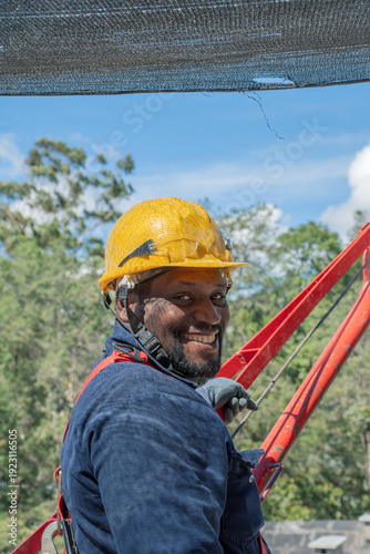 architecture, blue skies, building, construction, construction site, craftsmanship, dedication, effort, equipment, glove, happiness, happy, hard hat, helmet, industry, labor, landscape, lifestyle, manual labor, nature, outdoors, portrait, pride, profession, project, responsibility, rural, scaffolding, skill, smile, smiling, summer, sunny, teamwork, tool, tree, urban, men at work