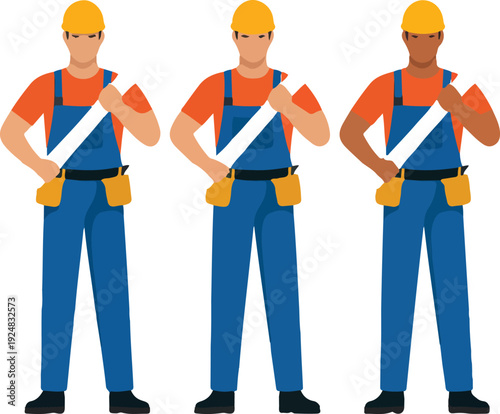 Construction Workers Outline Icon Set Male & Female Builders with Tools