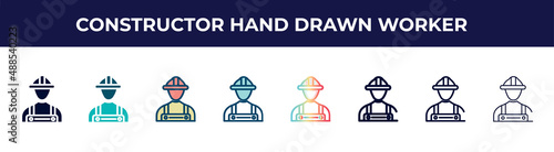 constructor hand drawn worker icon in 8 styles. line, filled, glyph, thin outline, colorful, stroke and gradient styles, constructor hand drawn worker vector sign. symbol, logo illustration.