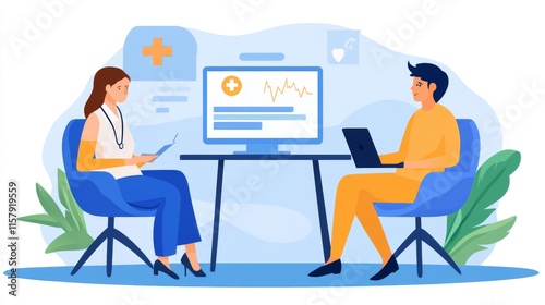 consultation, diverse, people, health care, discussion, technology, screen, sitting, interaction, office, workspace, well-being, professional, modern, communication, medicals, advice, background, sharpened, meeting, expression, patient, connection, teamwork, digital, dialogue, solution, health, therapy, collaboration, coaching, listening, concept, analysis, datum, support, plan, service, strategy, understanding, session, appointment, client, engagement
