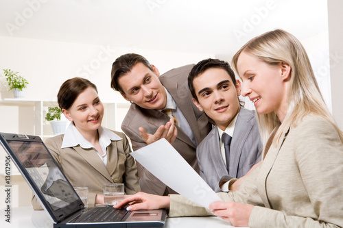 business, people, businessperson, person, female, woman, businesswoman, man, male, businessman, working, white, collar, men at work, confident, successful, professional, young, adult, partner, colleague, corporate, executive, group, teamwork, meeting, communicating, smile, positive, happy, interaction, collaboration, job, cooperation, co-worker, employment, tied-up, occupation, project, contemporary, laptop, document, paper, consulting, company, team, several, together, sharing, idea