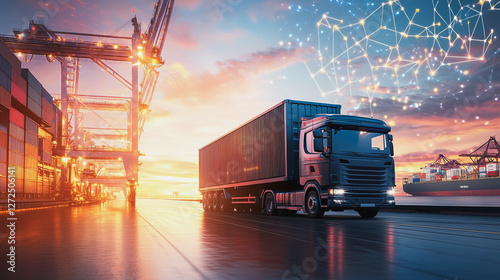 container, truck, ship, port, business, logistic, transportation, bridge, shipyard, sunrise, logistic, import, export, transport, e-business, aeroplane, future, express, dockyard, storage, dock, commercial, shipping, cargo, international, technology, global, freight, crane, unloading, harbor, sunset, sky, water, sea, night, river, city, landscape, sun, beach, evening, travel