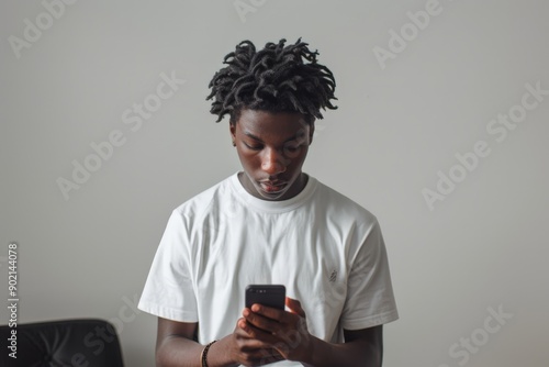 Contemplative Teenager with Curly Hair Looking at Cell Phone