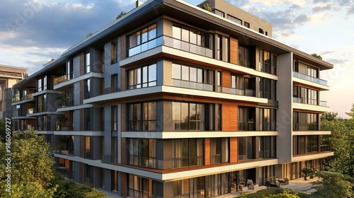 Contemporary Apartment Building with Expansive Windows. AI generated illustration