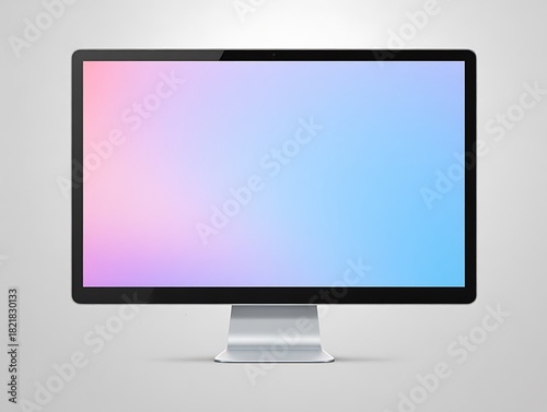 computer monitor, desktop, screen, display, technology, gradient, modern, sleek, digital, device, hardware, electronic, colourful, pink, blue, purple, workstation, office, blank, isolated, communication, cyberspace, computing, design, interface, datum, presentation, future, professional