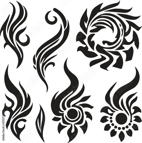 tribal, tattoo, design, vector, floral, silhouette, ornate, curve, tribal art, body art, abstract design