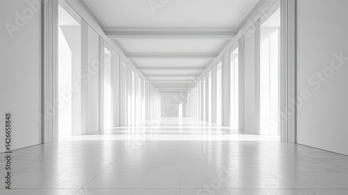 Contemporary white hallway interior design minimalist space architectural photography bright ambiance