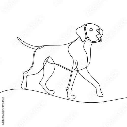 Continuous line drawing of a dog walking in minimalist style