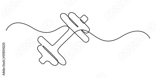 Continuous line drawing of Dumbbell - Barbell gym equipment drawing of dumbbell in continuous one line style. Sport equipment in simple linear style vector illustration