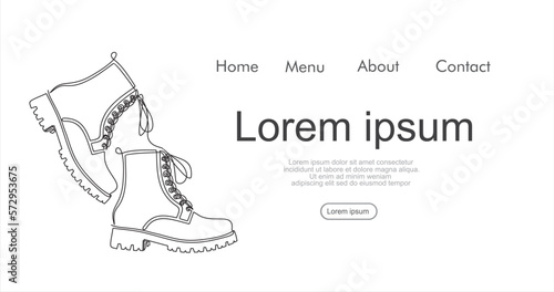 Continuous line drawing of man boots. Single one line, art boots. Vector illustration. Can used for logo, emblem, slide show and banner. Illustration with quote template.