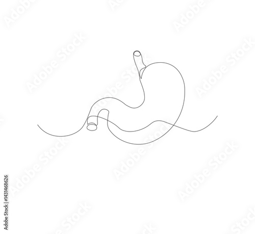 continuous line drawing of stomach, anatomy concept on minimalist white background. vector illustration