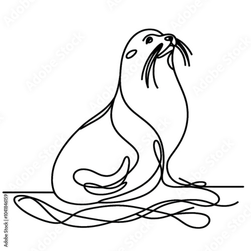 Continuous line sea lion illustration in minimalist style, AI Generation