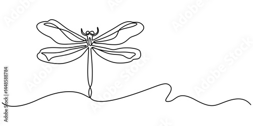 Continuous one Line Drawing of Dragonfly, Dragonfly continuous one line art drawing of outline. vector illustration, Insect animal themes in simple linear style vector design concept. Dragonfly insect