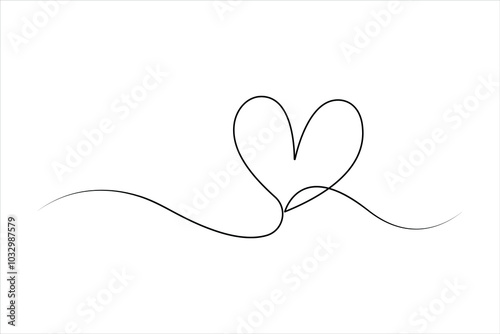Continuous single line drawing heart valentine's day love isolated hand drawn vector illustration