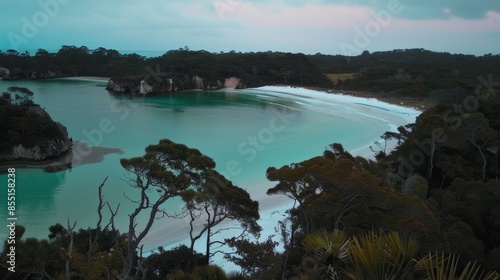 Contrast of stark white rocks against the vivid hues of crystal clear turquoise waters