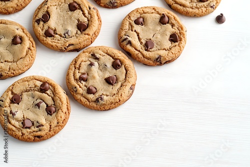 cookie, chocolate chips, baked goods, dessert, food, sweet, snack, treat, pastry, delicious, homemade, tasty, deliciously, photo, image, food photography, topview, overhead, closeup, baked, brownie, chips, chocolate, crispy, round, bakery, pastry, baking, ingredient, close, white background