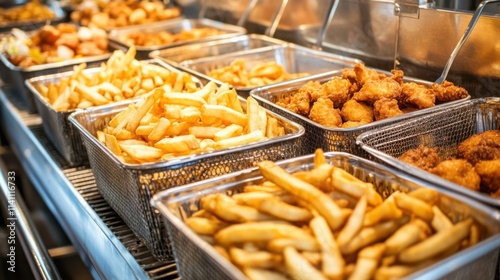 fryer, cooking, scene, basket, food, eatery, kitchen, lighting, preparation, oil, cookery, meal, frying, equipment, counter, serve, fast food, kitchen utensile, culinary, fried food, snack, ingredient, favor, heat, process, workstation, order, tied-up, chef, delicious, crispy, gold, texture, plate, uniform, setup, hygiene, fries, image, activity