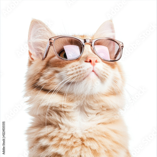 Cool Ginger Cat with Sunglasses Trendy Feline Fashion Concept on White Background