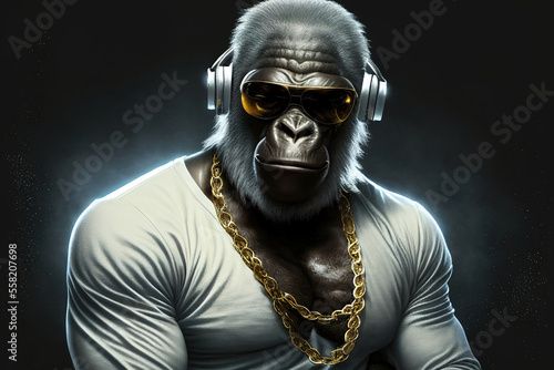 Cool monkey gorilla Gangsta rapper in sunglasses. sketch art for artist creativity and inspiration. generative AI