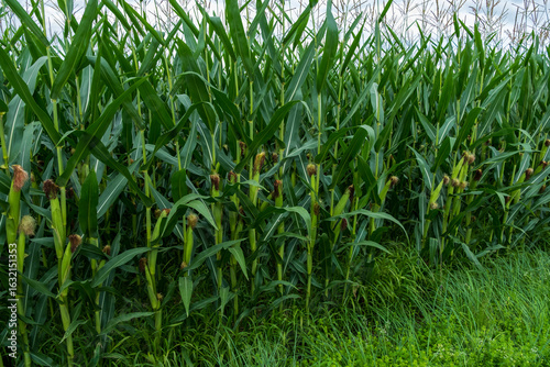 field, green, agriculture, grass, corn, nature, plant, farm, sky, summer, wheat, food, crop, meadow, spring, farming, landscape, blue, rural, maize, growth, season, fresh, grow, harvest