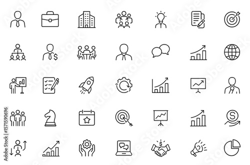 corporate, icon, business, company, career, teamwork, office, network, entrepreneur, community, leadership, conference, cooperation, organisation, employee, vector, illustration, briefcase, job, meeting, structure, outline, editable, line, architecture, planning, chart, project, workflow, skyscraper, finance, management, communication, contract, success, presentation, marketing, economy, global, building, deal