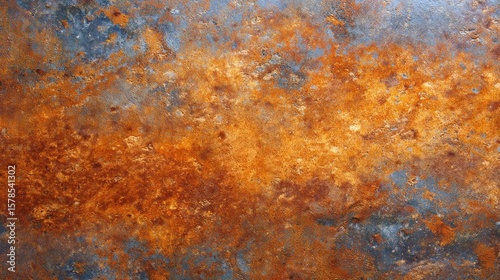 Corroded Steel Plate Showing Vibrant Mix of Orange and Blue Hues from Acid Exposure