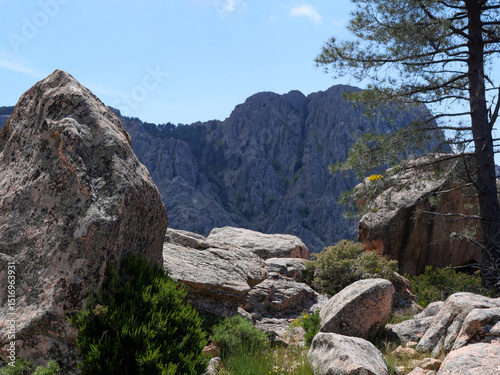 corsica, hike, mountain, rock, landscape, heaven, nature, saint-pierre, canyon, view, shaft, cliff, green, travel, summer, park, gorge, hill, forest, europa, river